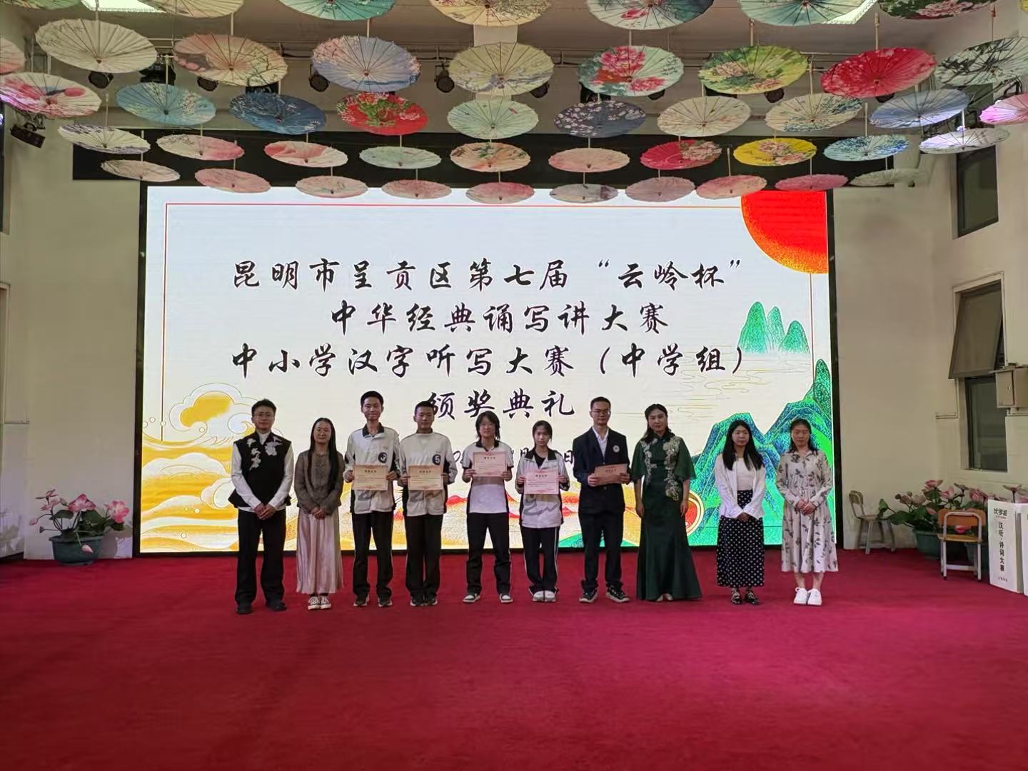 2025年4月23日,由呈贡区教育体育局与呈贡区教育科学研究院联合主办的第七届“云岭杯”汉字听写大赛在呈贡区第三小学圆满落幕。经过激烈角逐,云大附中呈贡中学代表队凭借扎实的汉字功底和出色的临场发挥,以绝对优势夺得团体总分第一名,再次展现了学校在传统文化教学领域的实力和深厚底蕴。