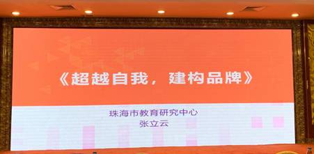 11月13日上午,珠海市教育研究中心副主任张立云老师为我们作了题为《超越自我建构品牌》的专题讲座。张老师是拥有36年教龄,常年在教育一线的授课专家。她坚信每个人都可以超越自我,成就属于自己特色的独立品牌。她从三个方面给我们展示了珠海教育特色品牌是如何构建的。