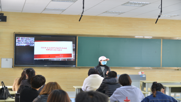 英语学科的秦林丽老师带领老师们解读课标和2020年学业水平考试说明,列出了英语题型和分值,强调试题特点,命题重视语境的创设与运用,关注学生综合语言运用的情况。结合我市初中英语教学的实际,给老师们提出了有效可行的教学建议和复习建议,为备考提供了重要依据。