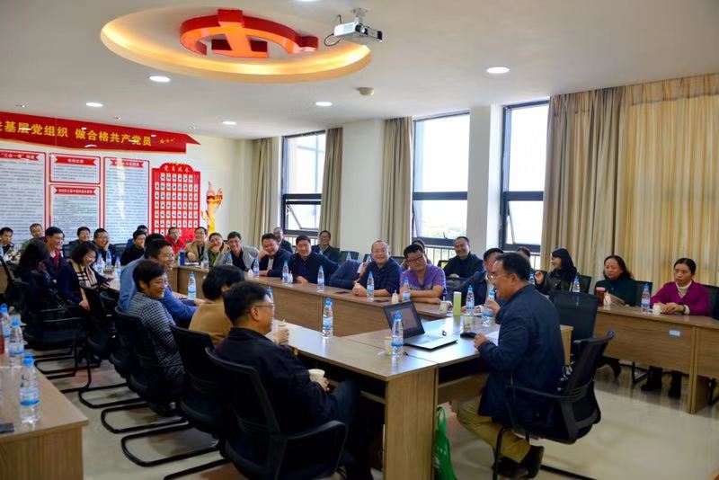 在校园参观结束后,50余名校长一同来到了学校党员活动室。王爱民校长作为云大附中呈贡校区由小到大、由弱到强逐步走向优秀的亲历者,他以《培养习惯 爱满校园》为主题,结合学校的艰难创业史以及个人的管理经验和主要做法,用“原生态”的图片、实实在在的语言,围绕“环境育人——校园建设篇、活动育人——德育管理篇、课程育人——教务工作篇、教书育人——教师成长篇、服务育人——校园安全篇”等五个板块,全面、深入地介绍了学校的主要做法和有益经验。在讲座期间,校长们聚精会神地倾听,在讲到特色处、精彩处,不仅迎来了阵阵热烈掌声,还引起了校长们的交流、讨论和分享。