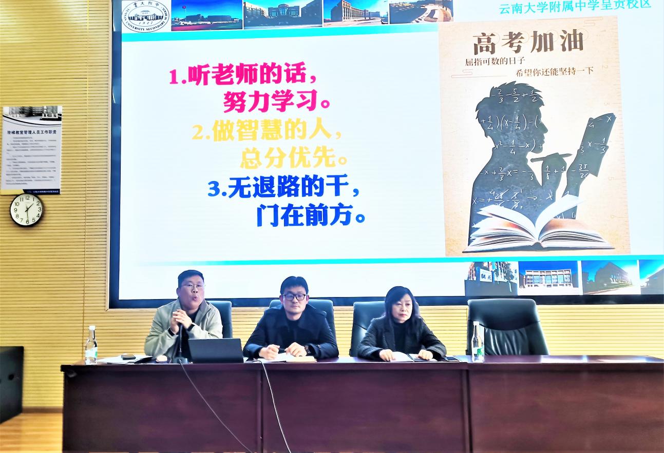 为鼓舞斗志、提振信心,充分激发高三临界生的潜力,促进临界生成功实现跨越提升,2023年3月31日,云大附中呈贡校区在敏苑阶梯教室召开2023届高三临界生动员大会。学校党总支倪芳书记、曹玉副校长和教务处杨云主任、高荣菊副主任,教科室张星主任参会并作动员讲话,高三年级教师及临界生参加会议。会议由高三年级组长王凯老师主持。