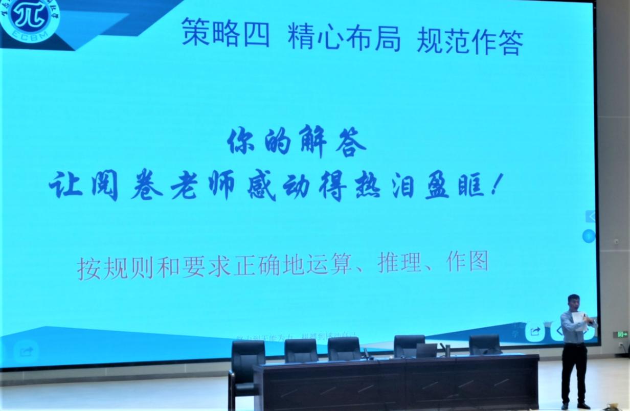 倪老师通过对答题卡的布局讲解,详细说明了如何按规则和要求正确地运算、推理、作图。