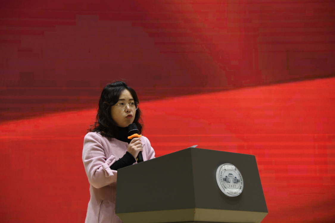 在学生前进的路上一支支蜡烛点亮着学生学习的道路,引领着学生走向成功。他们就是可敬的老师们。由初一5班班主任金然老师代表教师们发言。学生的成长离不开家长们的悉心照顾,在班级的家委们关心和爱护下学生们茁壮成长。由初一2班的邵钱斯迪妈妈代表家长们说出对学校对老师对孩子们的心里话。讲话过后由初一9班的同学给我们带来舞蹈。