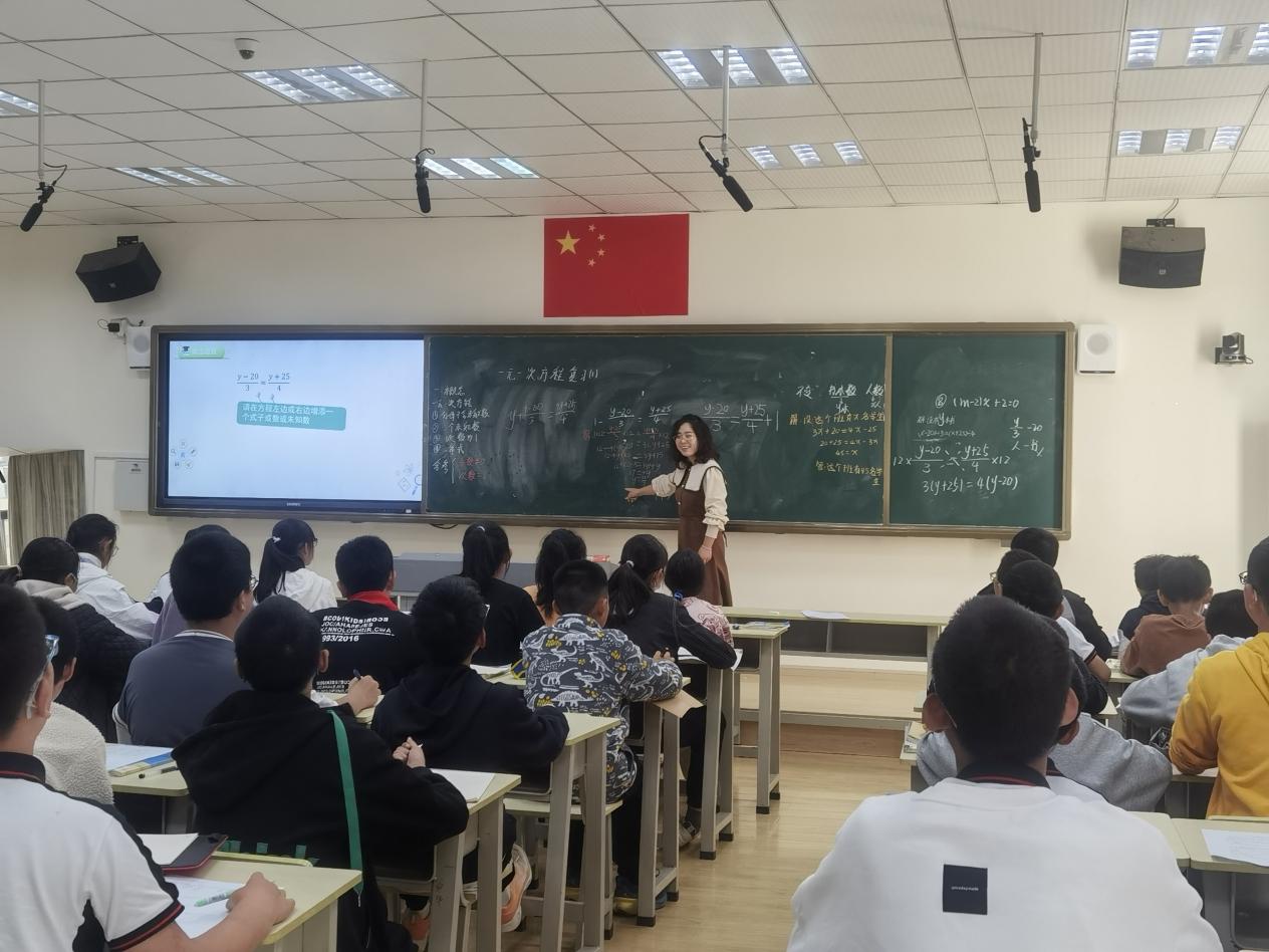 教研组点评:李坤老师在引入新课上花了很多功夫,教会了学生如何用尺规作图画出两个对应边成比例的三角形,讲练结合,夯实了数学基本功,训练了学生的类比思维,提高了学生的动手能力。教学内容大胆创新,融合多个知识点,课堂容量大,效率高。